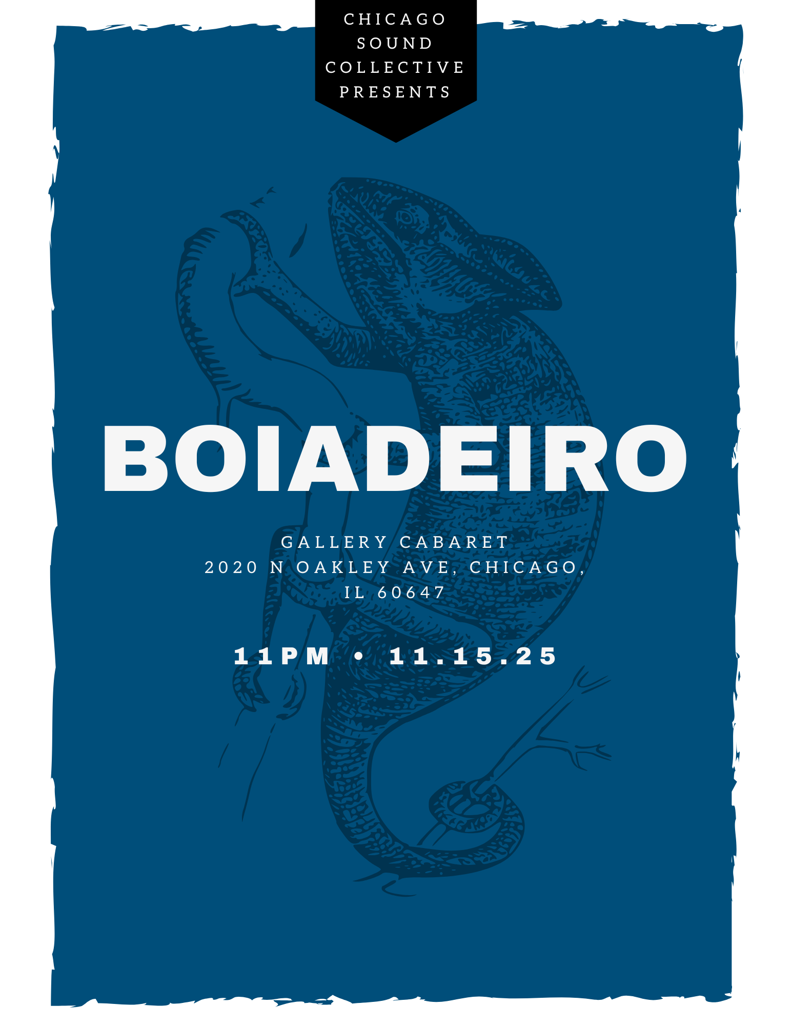 Gallery Cabaret 2020 N Oakley Ave, Chicago, United States๐ Boiadeiro Live at Gallery Cabaret โ November 15th! ๐ Dive into the genre-bending sounds of Boiadeiro, where jazz, rock, and beyond collide in a hypnotic, soulful groove. Every set… Continue reading See Boiadeiro live at Gallery Cabaret in November!